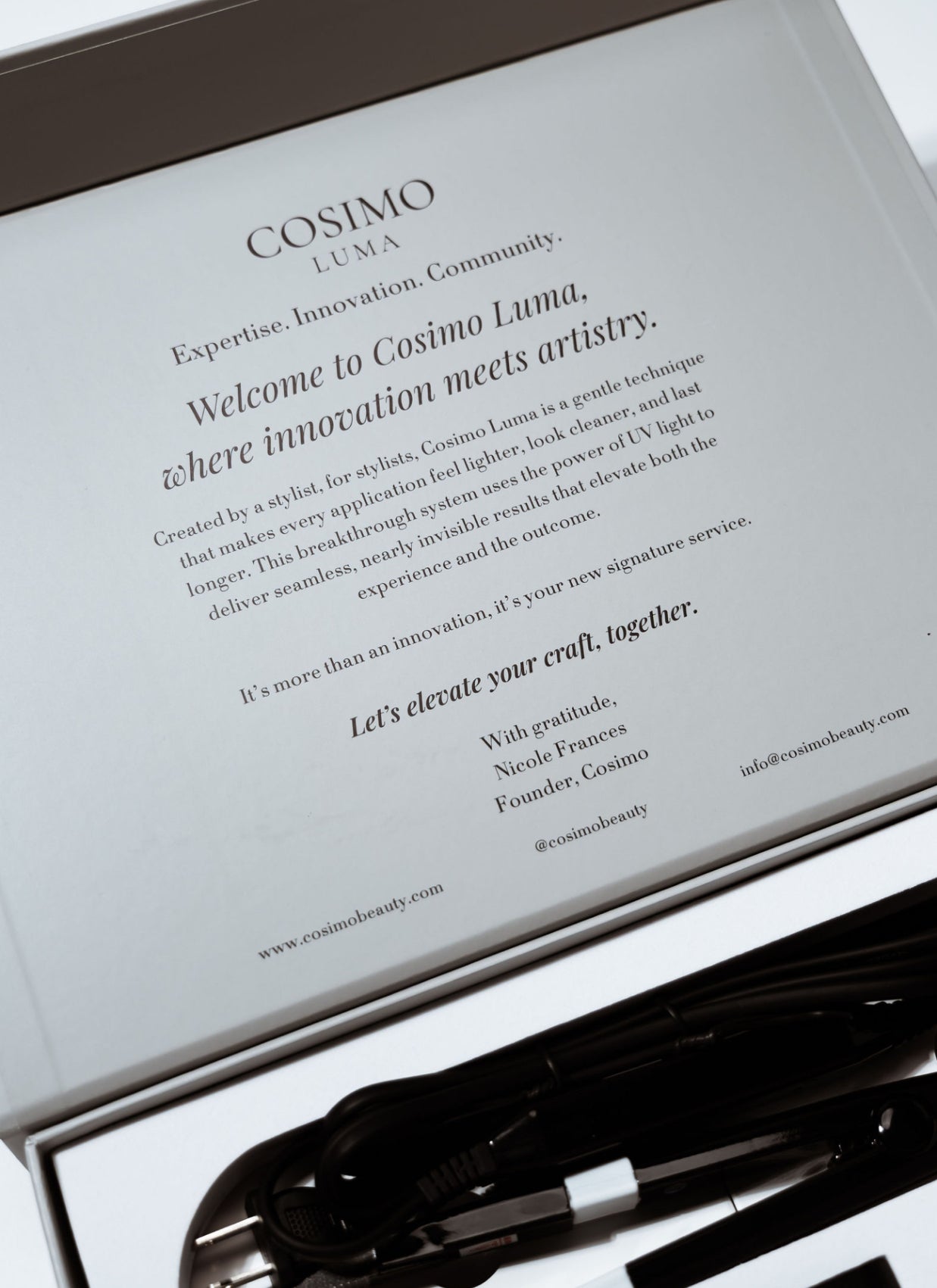 Designed with the stylist in mind, Cosimo Luma’s UV system fuses innovation and craft for a new era of extensions.
